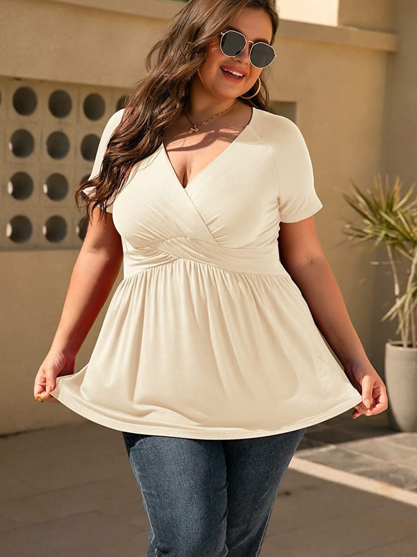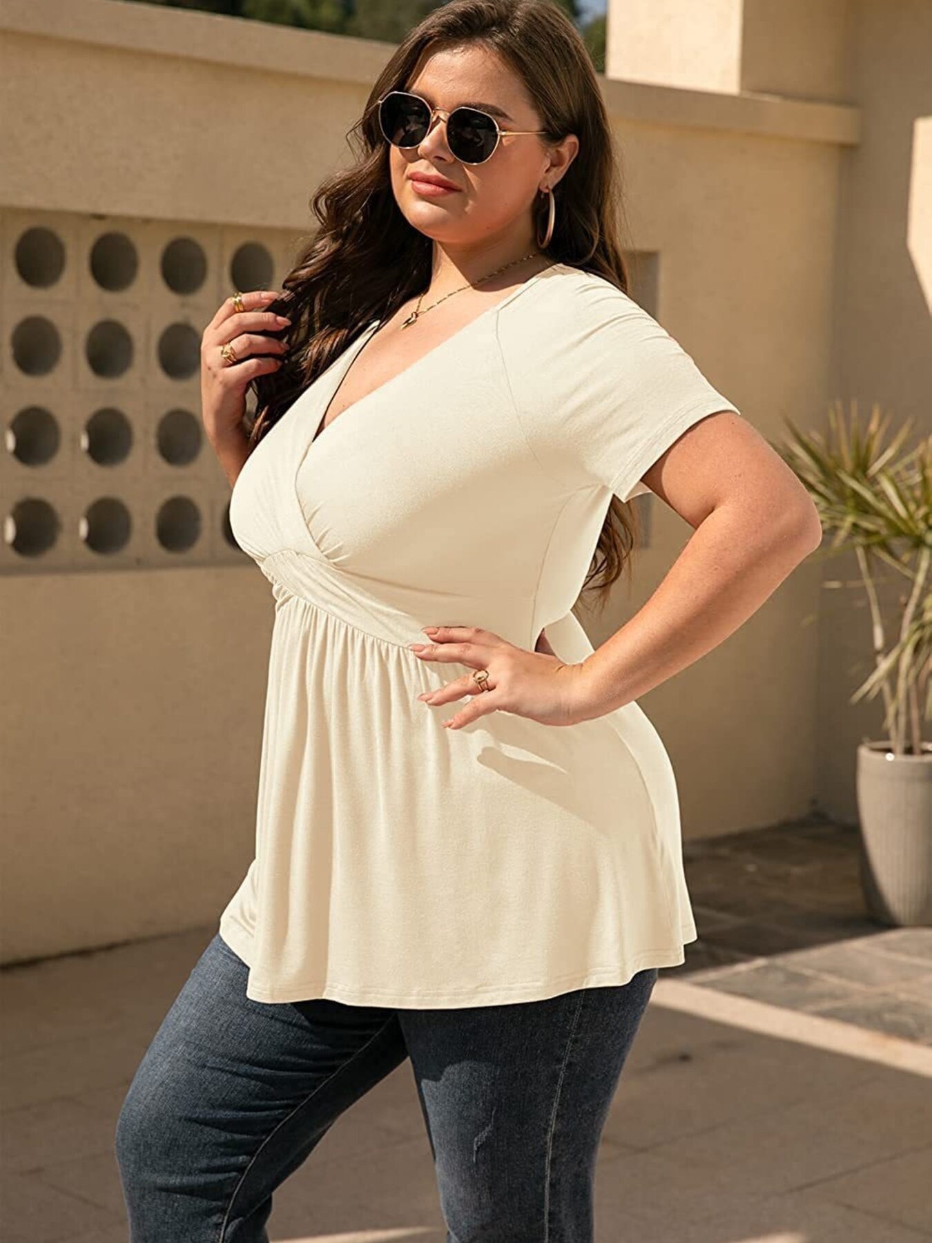 Plus Size Surplice Short Sleeve T-Shirt