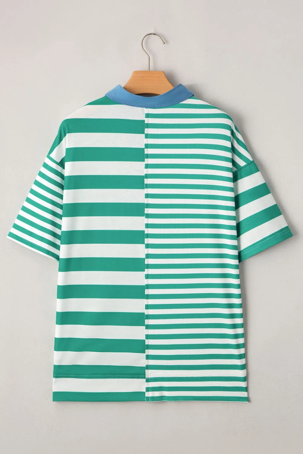 Stripe Colorblock Collar Half Button Shirt