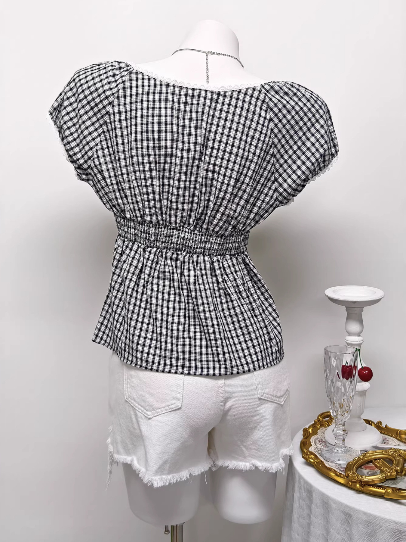 Plaid Short Sleeve Blouse
