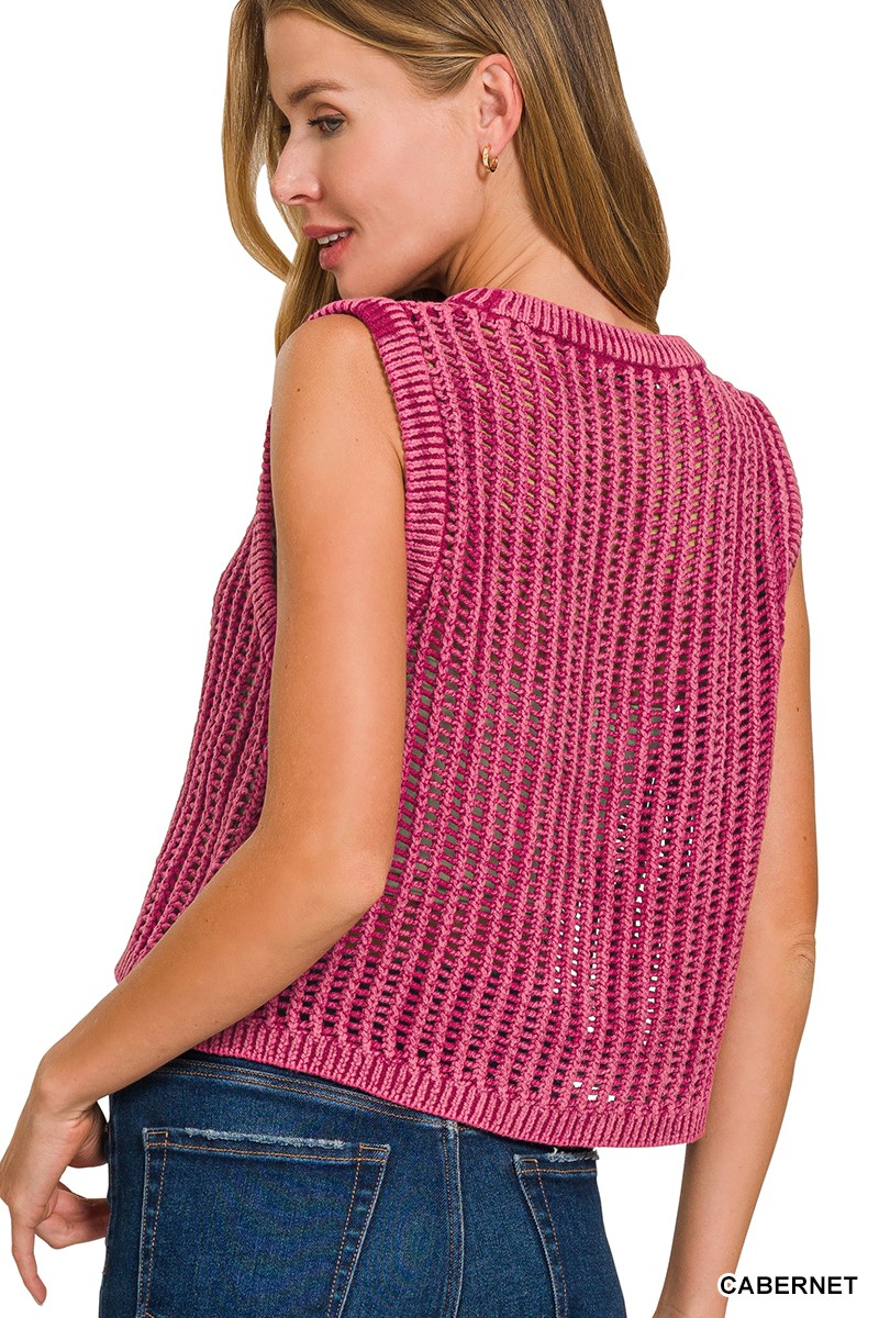 Zenana Acid Washed Fishnet Sweater Vest