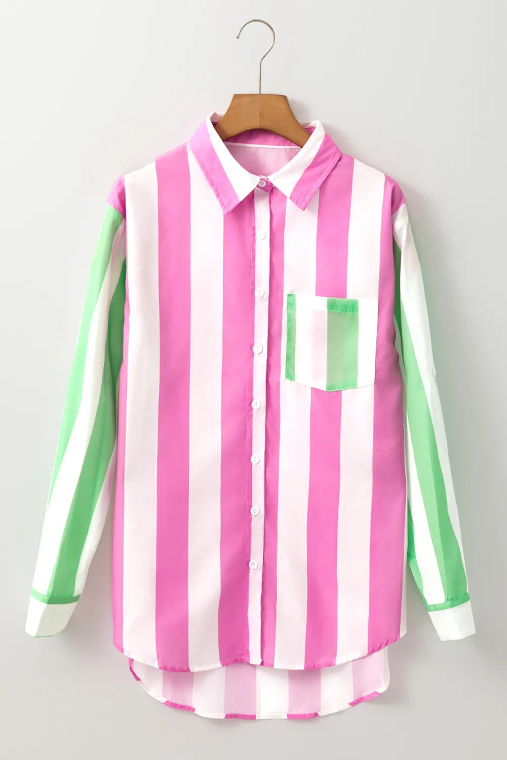 Contrast Stripes Collared Neck Long Sleeve Shirt