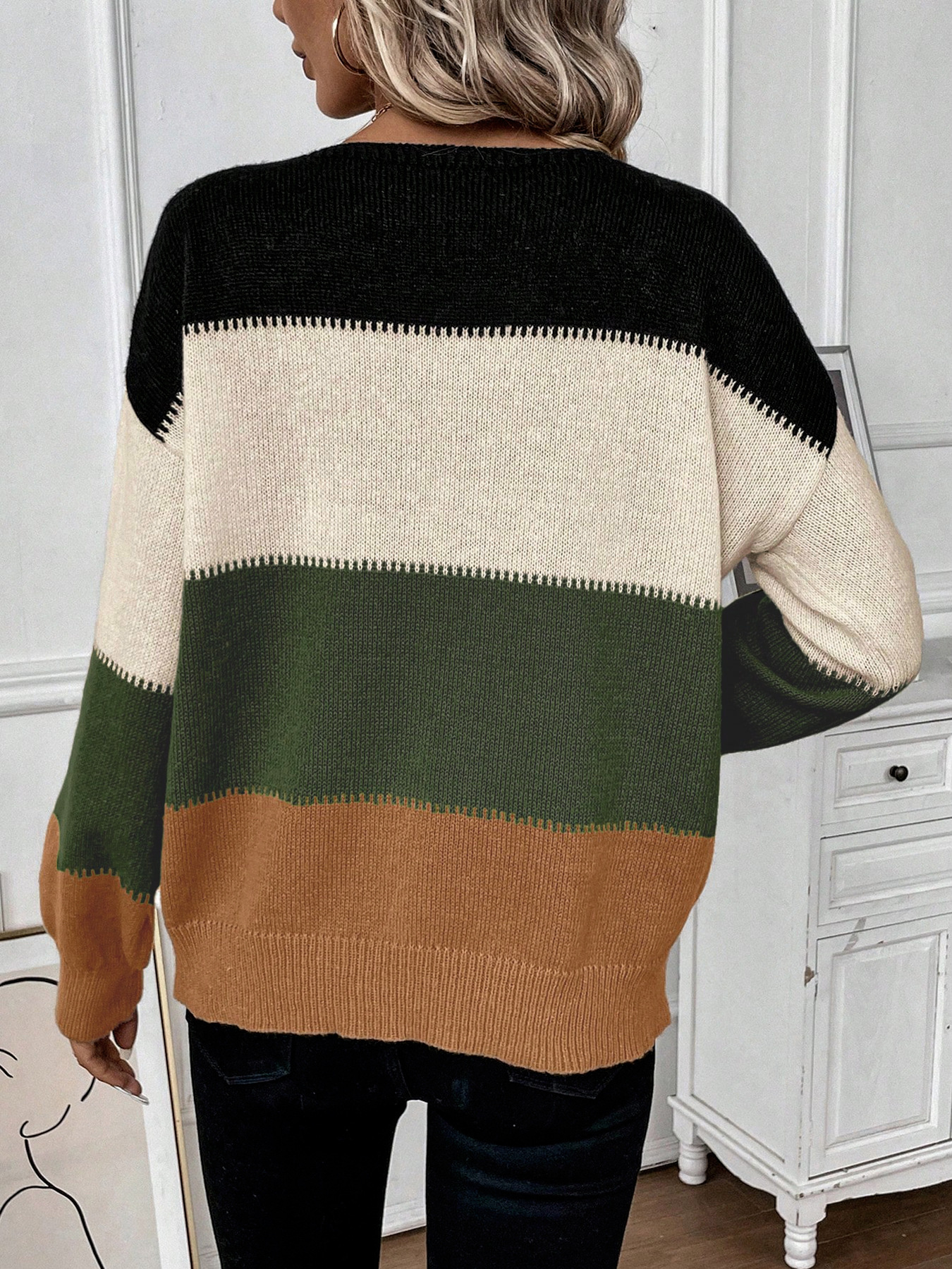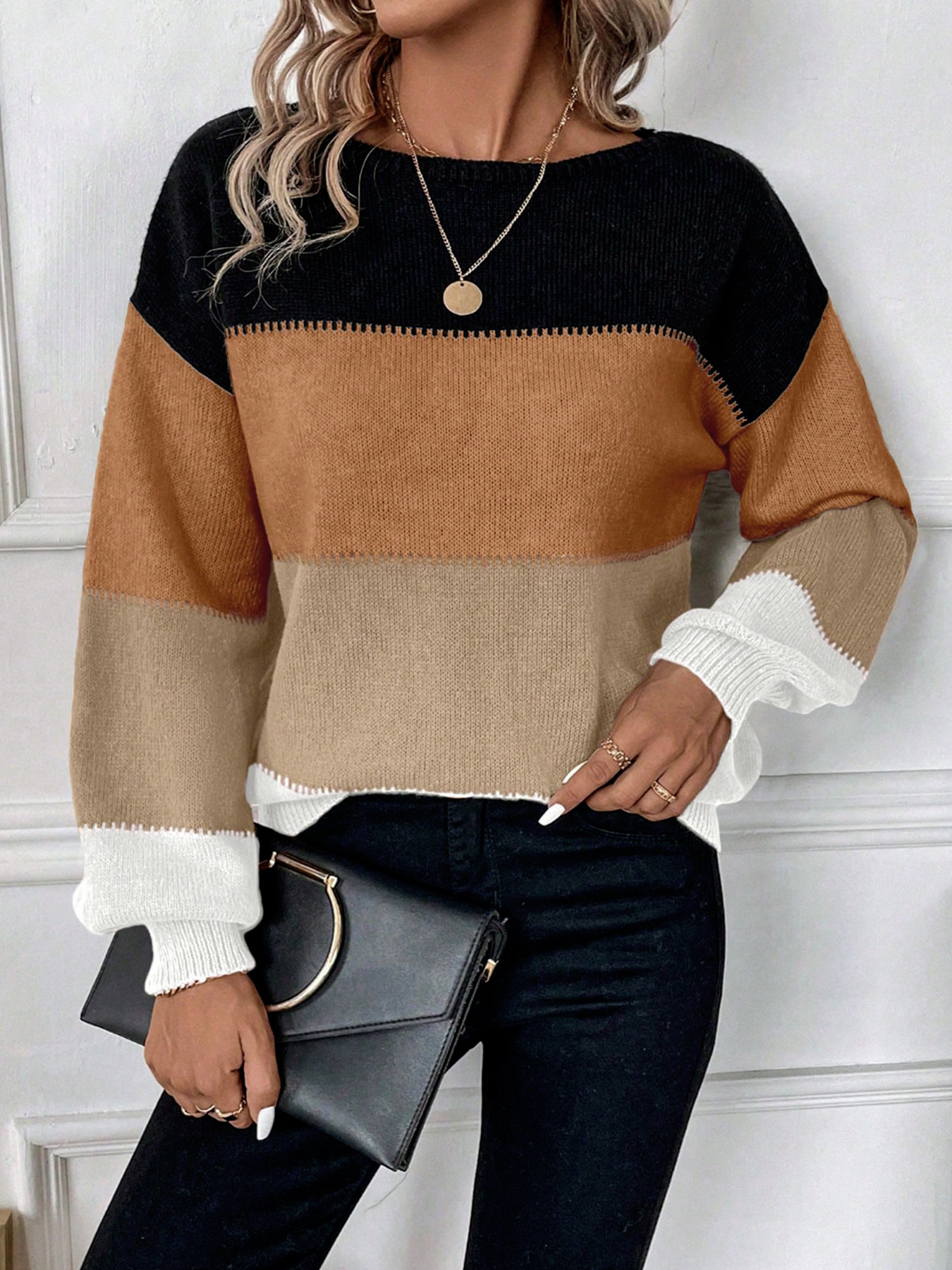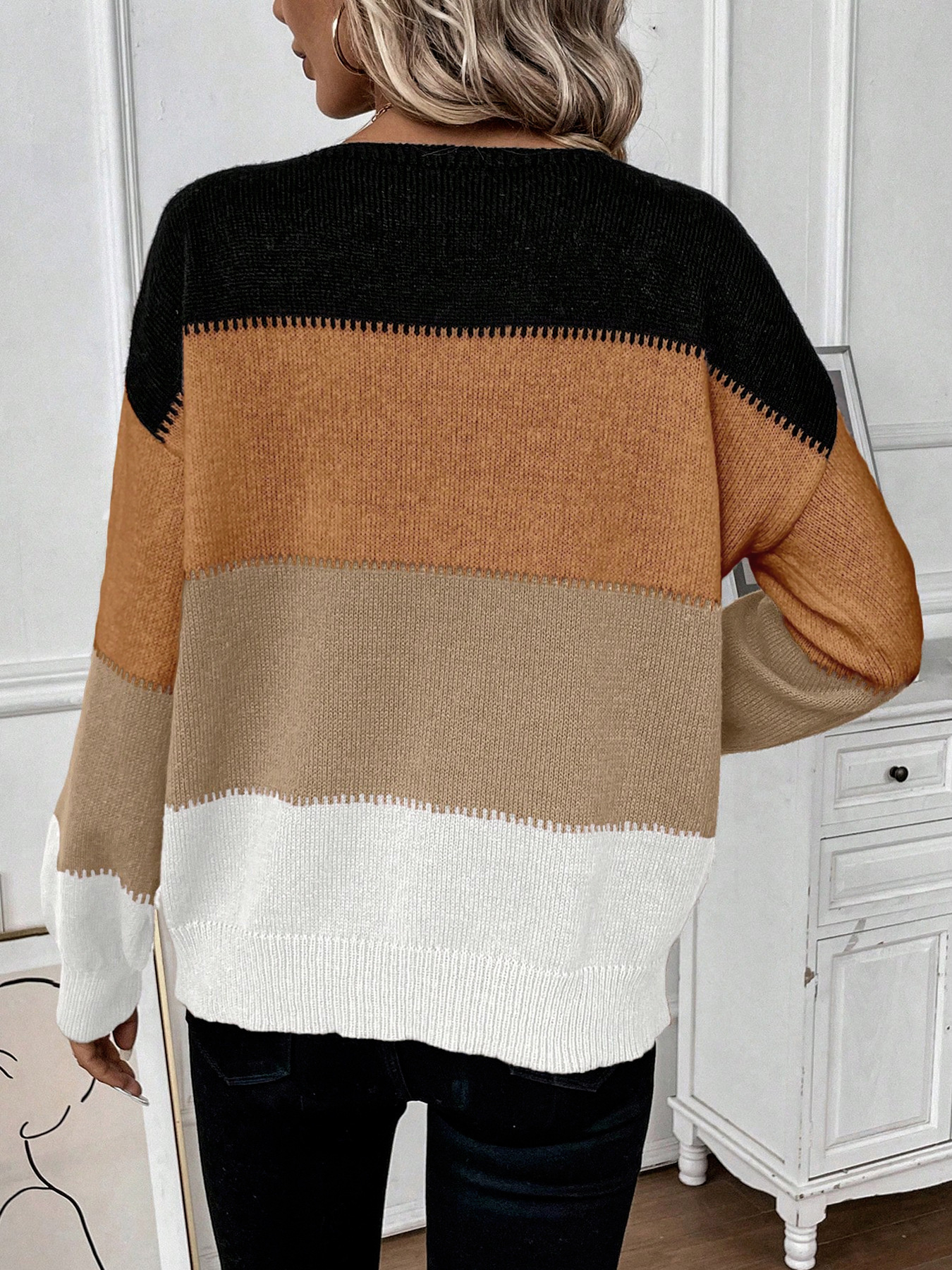 Color Block Round Neck Knit Sweater