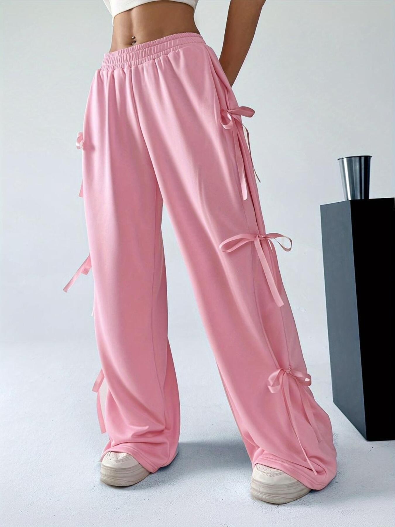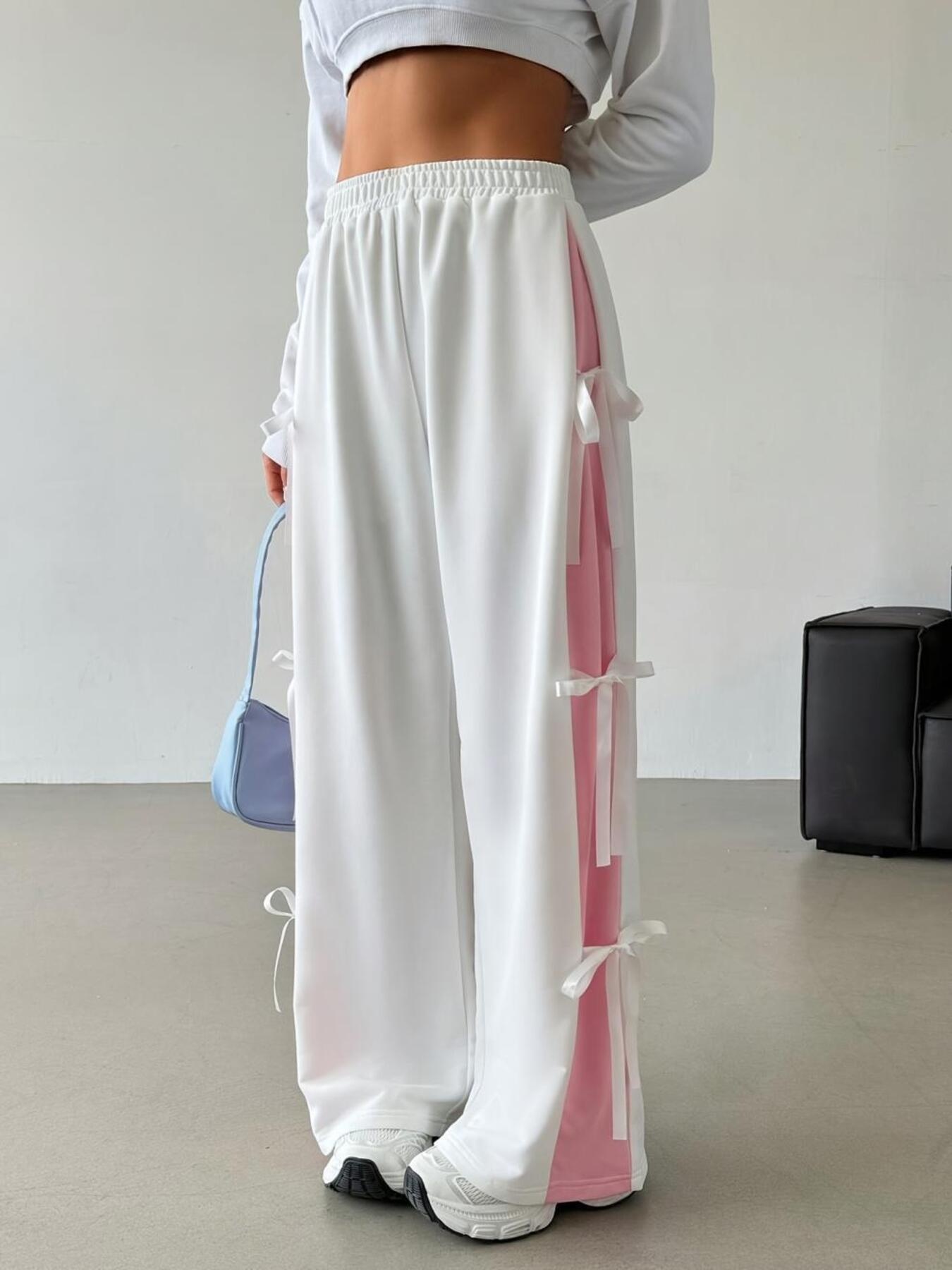Side Tie Contrast Wide Leg Pants