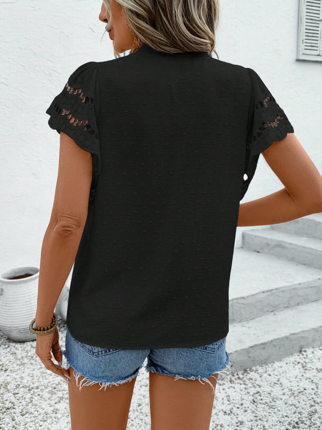 Swiss Dot Cutout Button Down Shirt