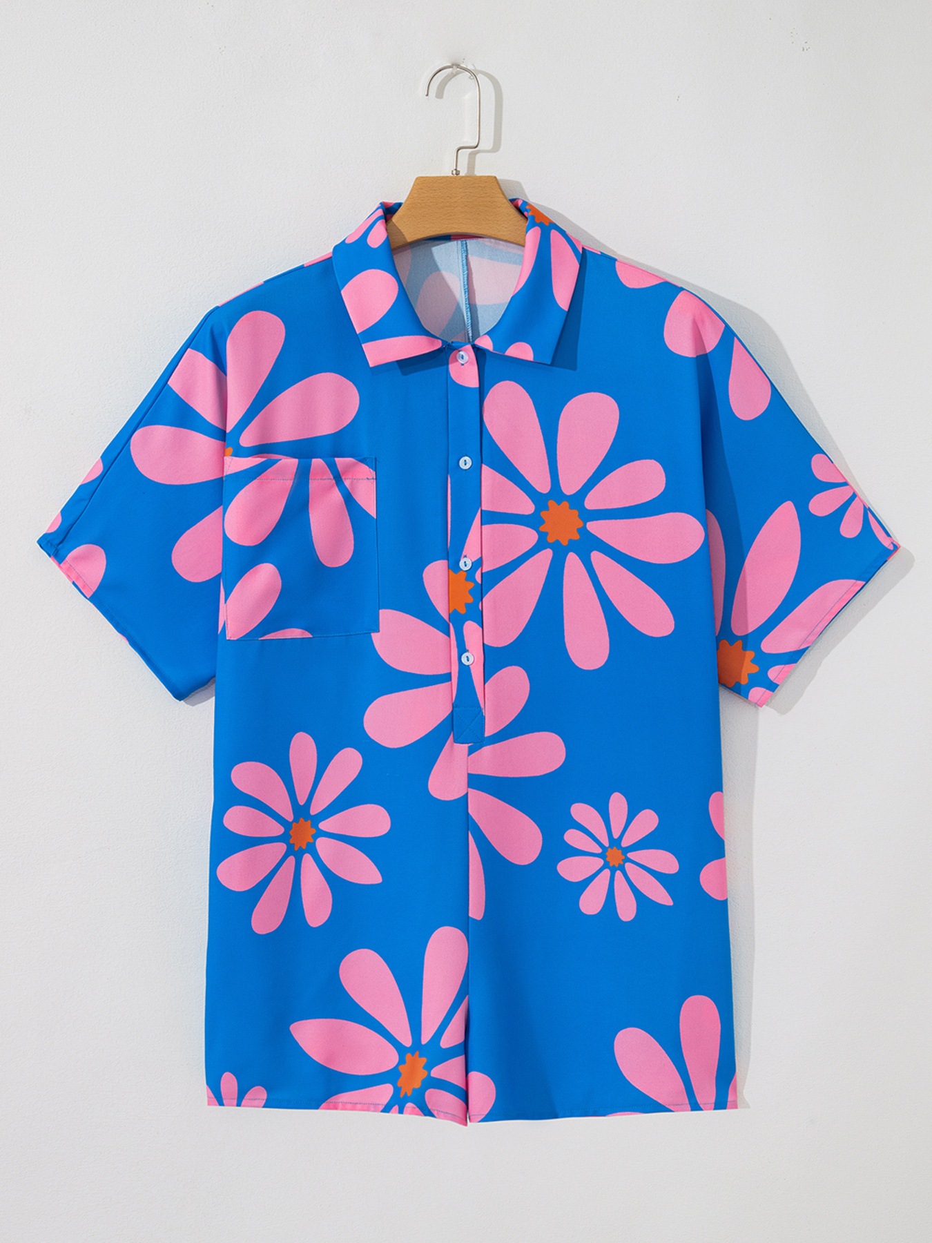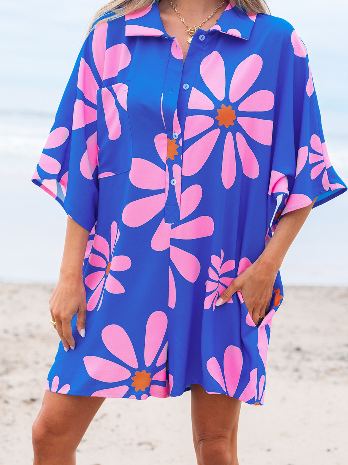 Summer Flower Print Shirt Collar Button Front Loose Romper