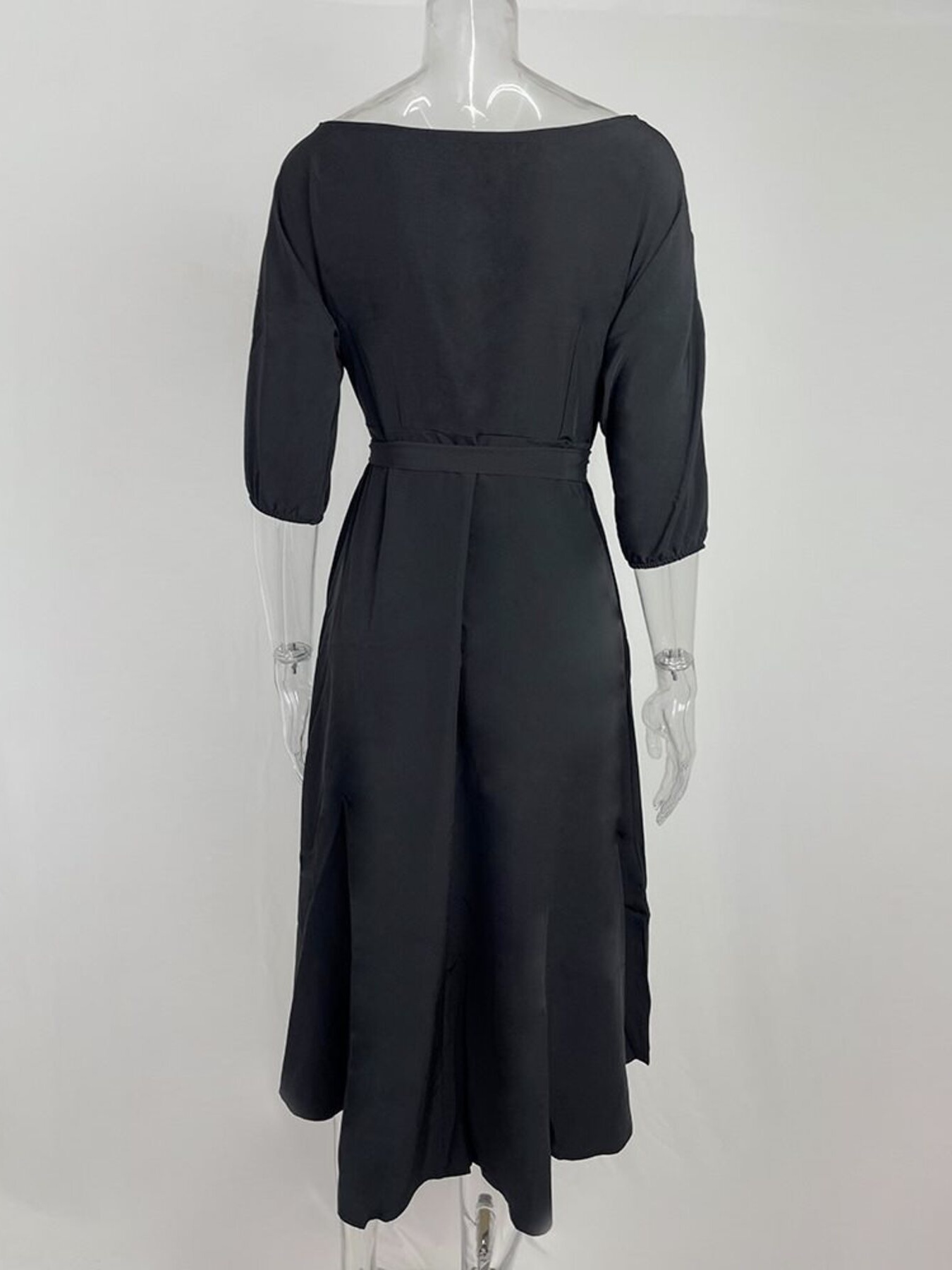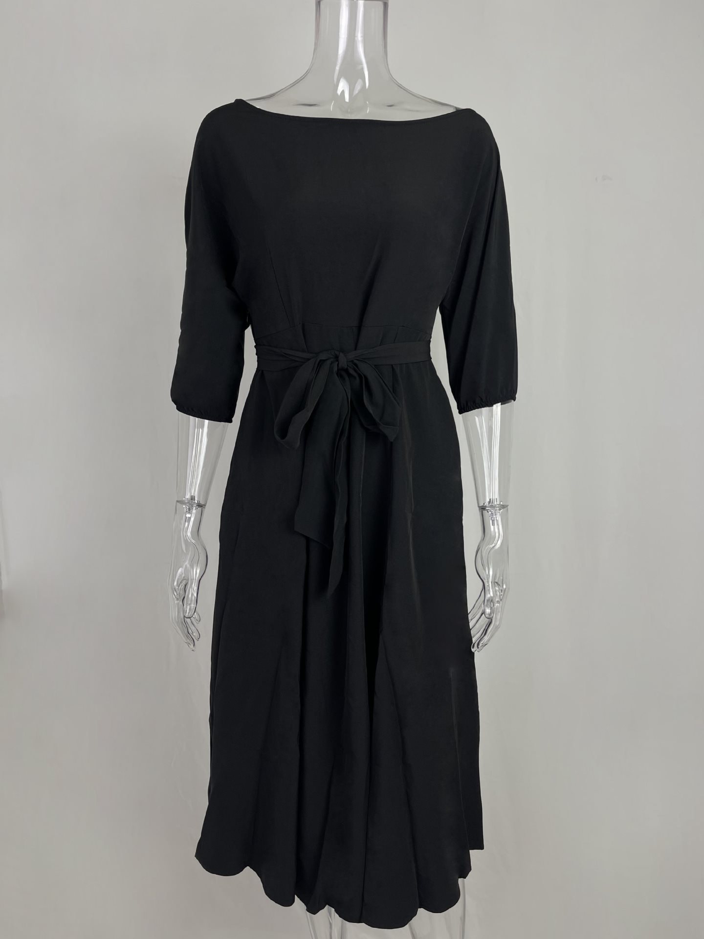 Boat Neck Tie Waist Midi Dress