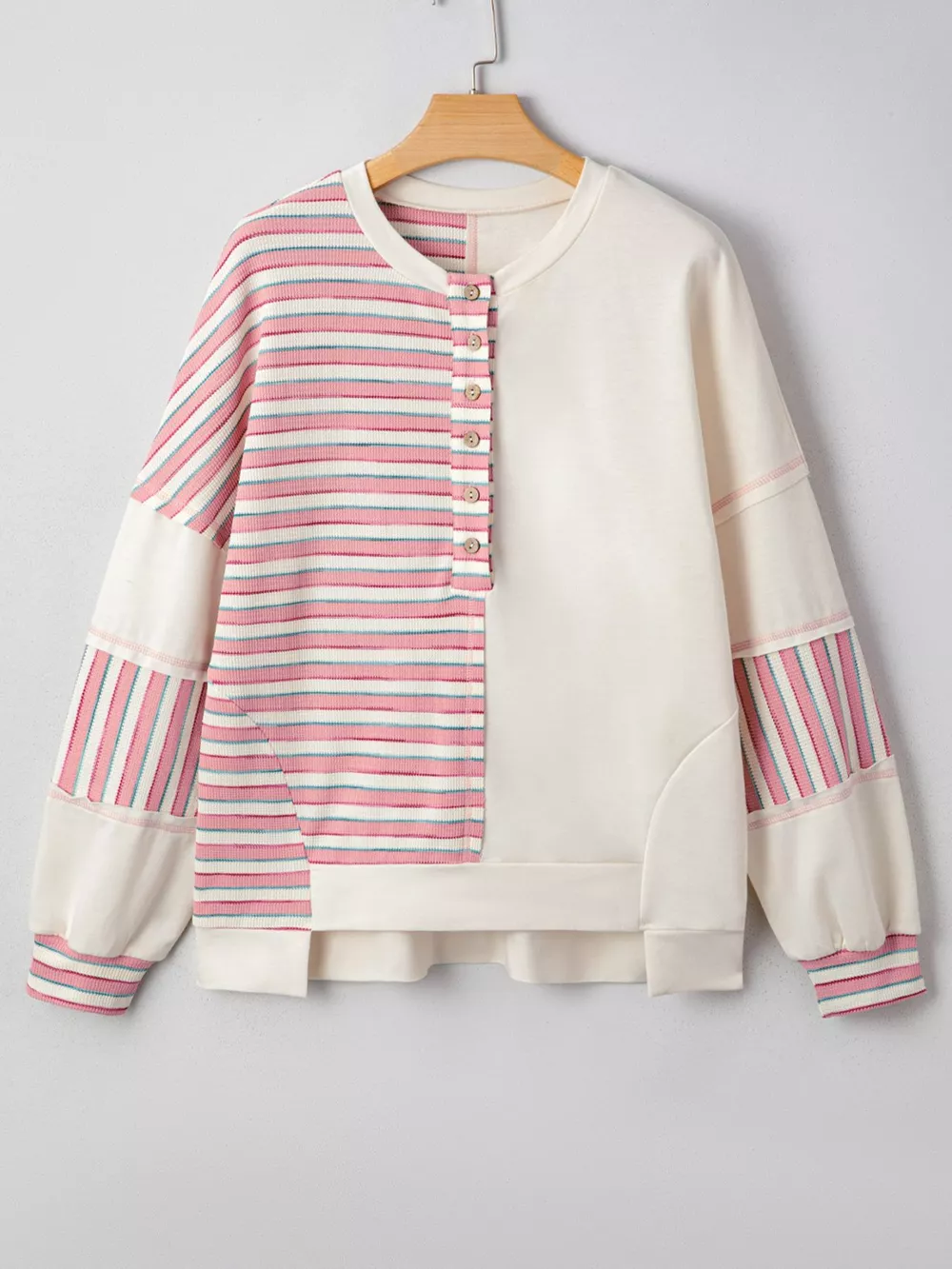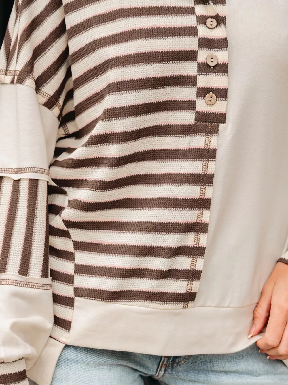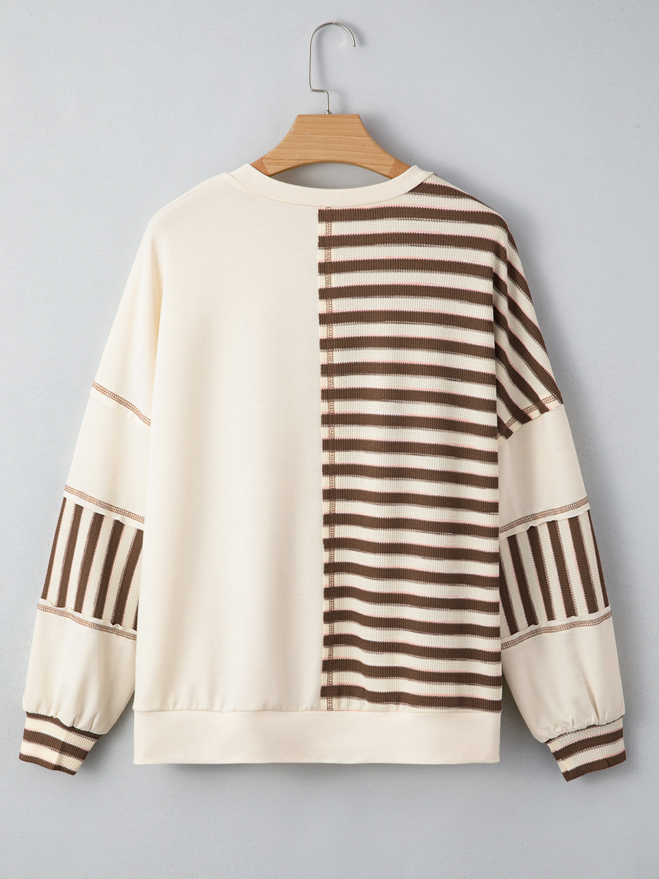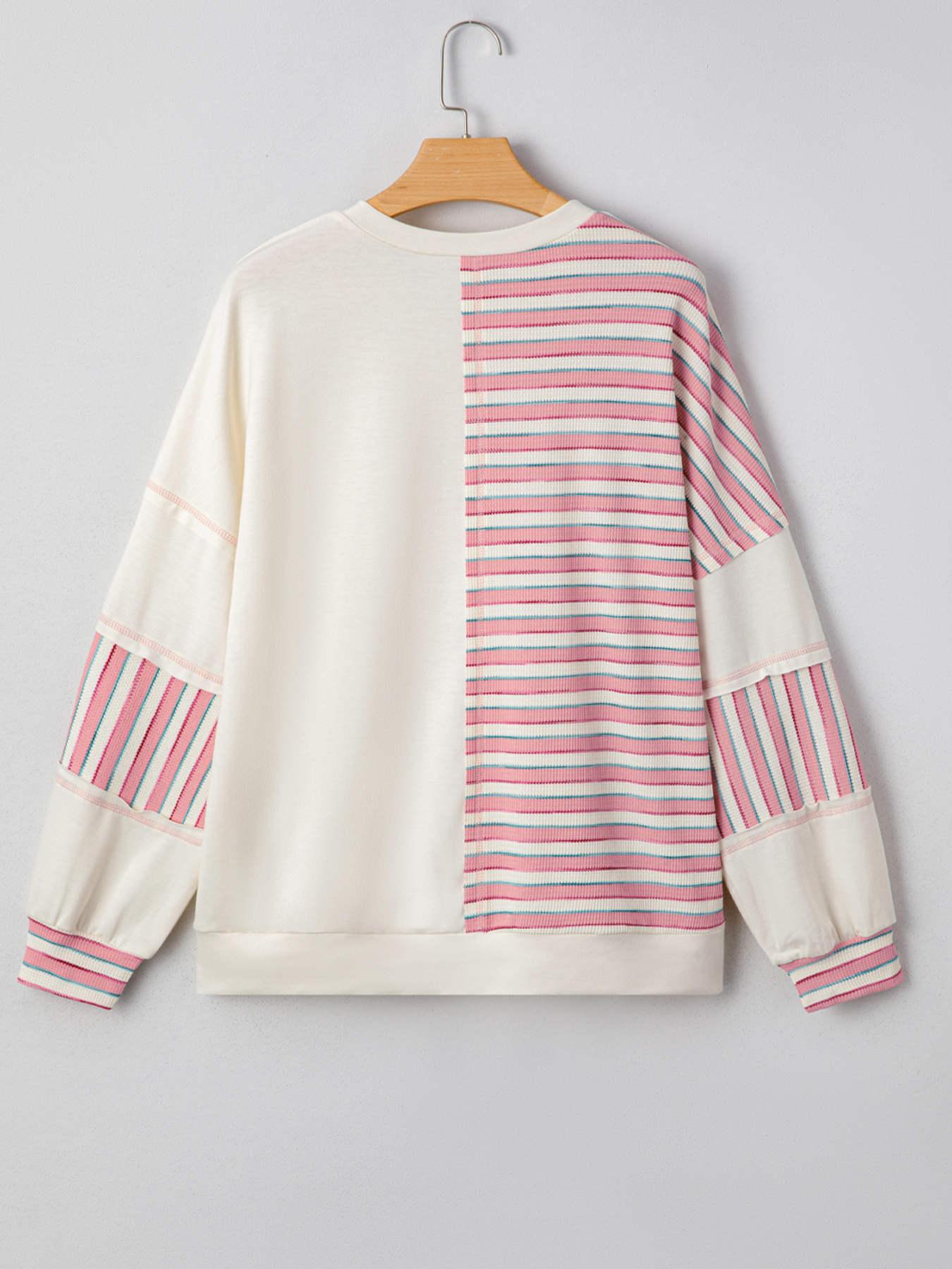 Stripe Stitched Detail Color Block Patchwork Oversized Top