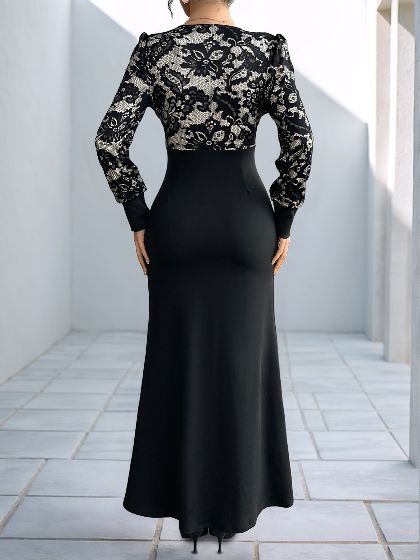 Lace V-Neck Long Sleeve Maxi Dress