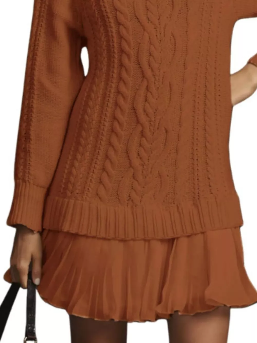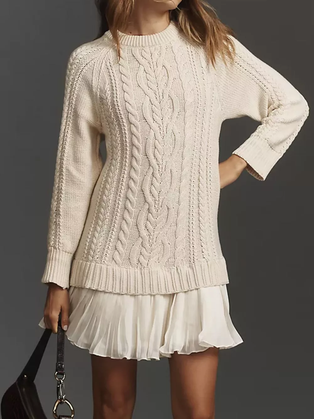 Full Size Cable-Knit Mini Sweater Dress Plus Size