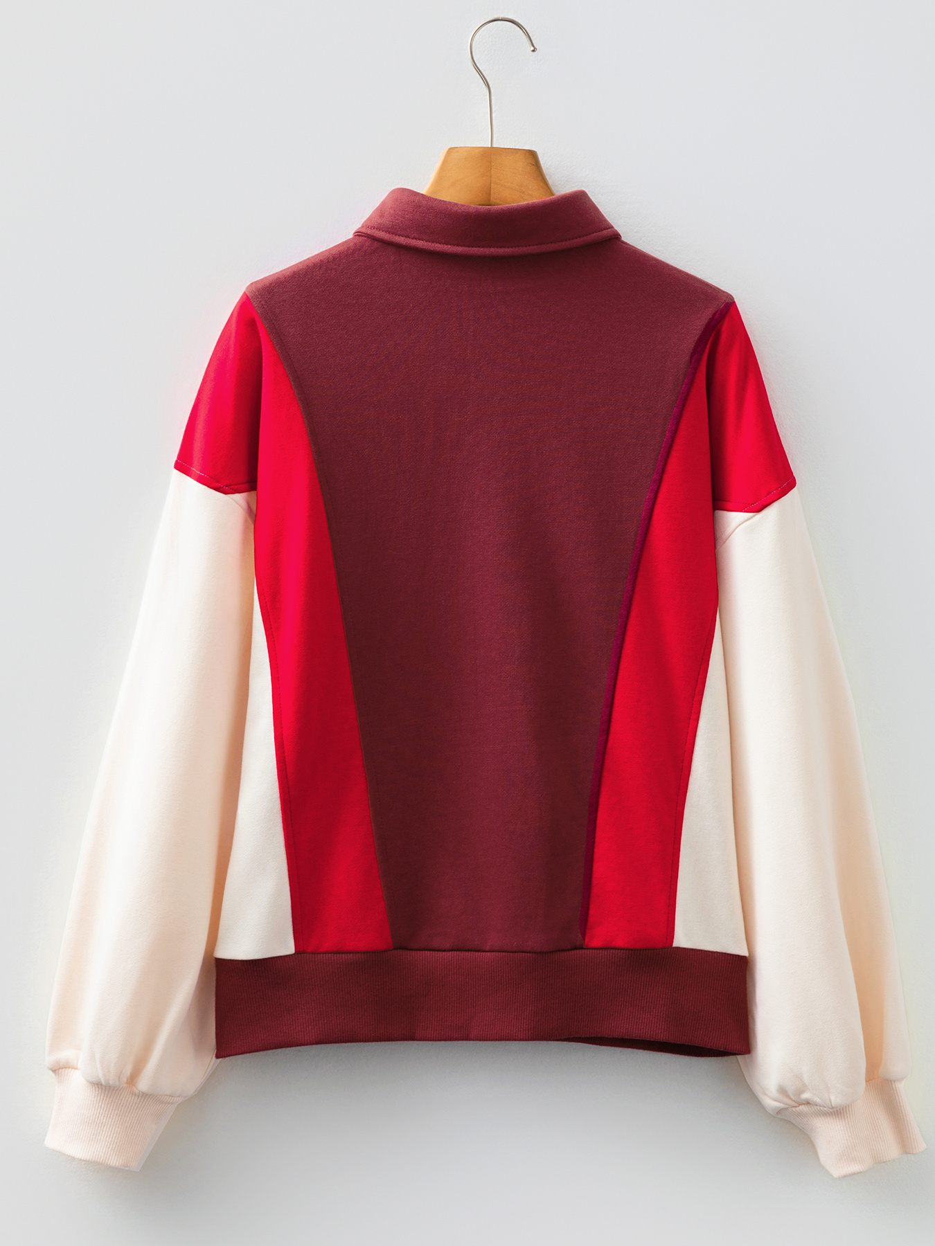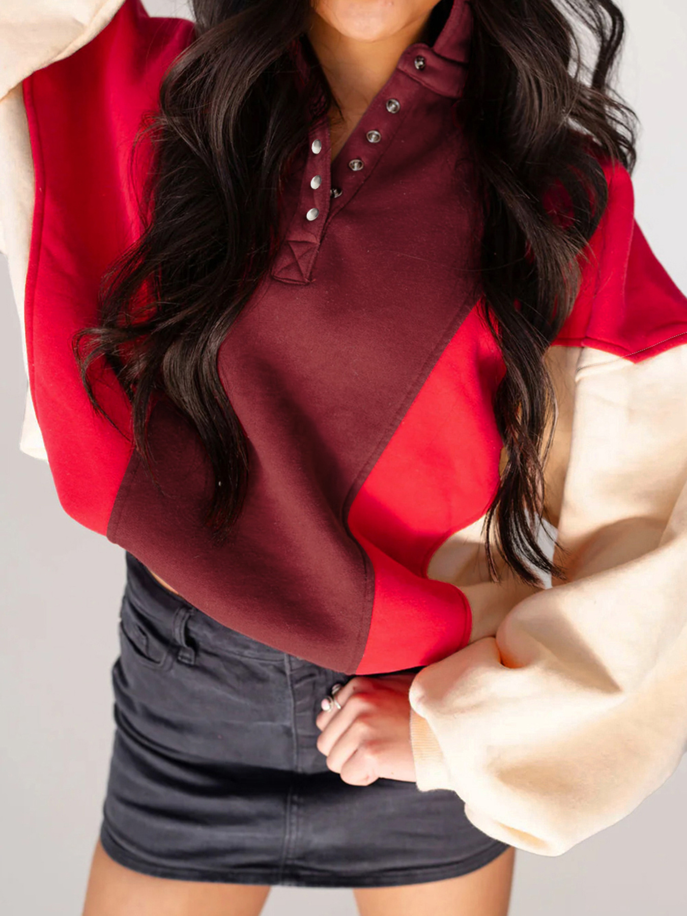 Color Block Patchwork Snap Button Oversize Hoodie