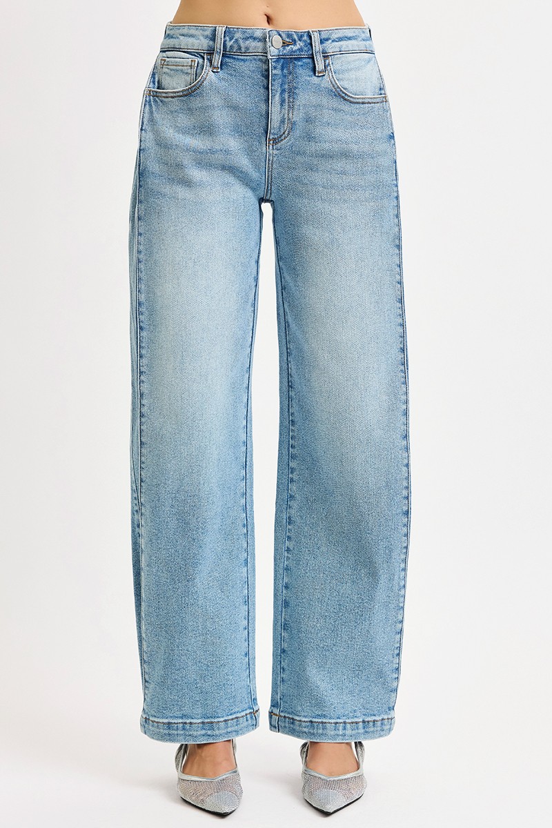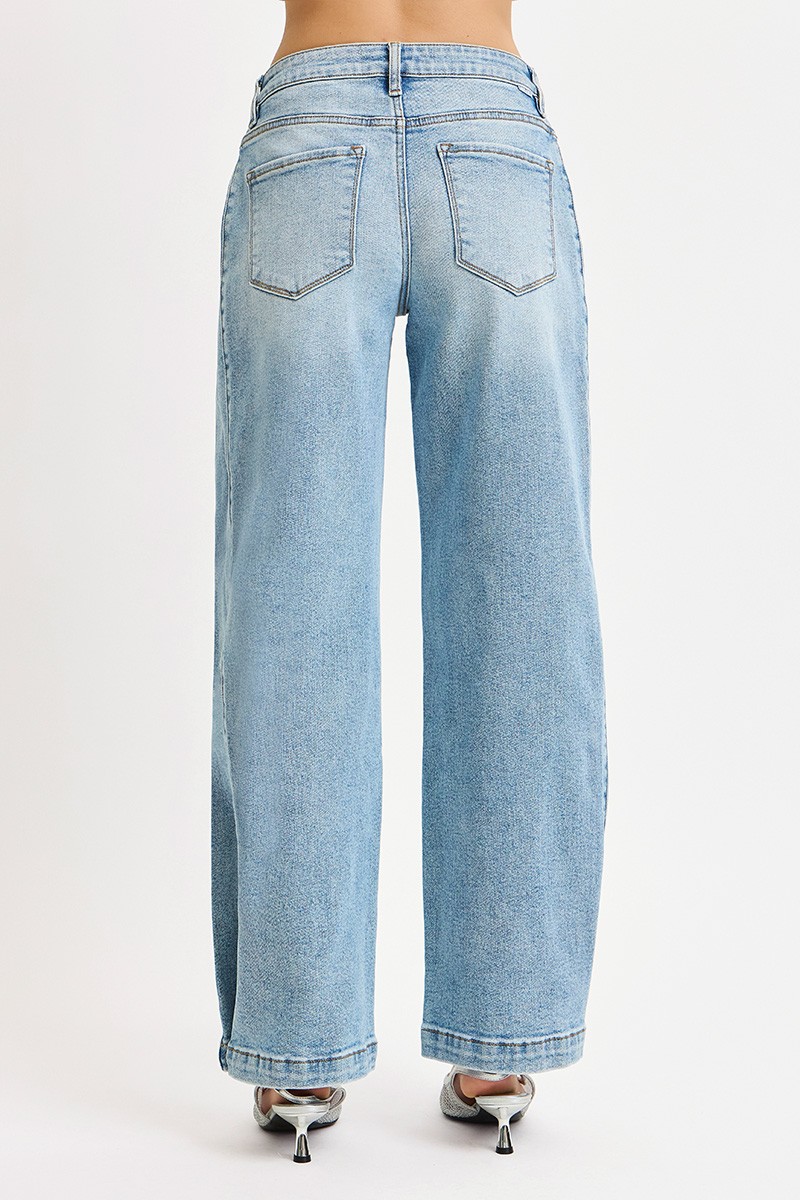 Risen Mid Rise Wide Barrel Transferable Leg Snap Jeans